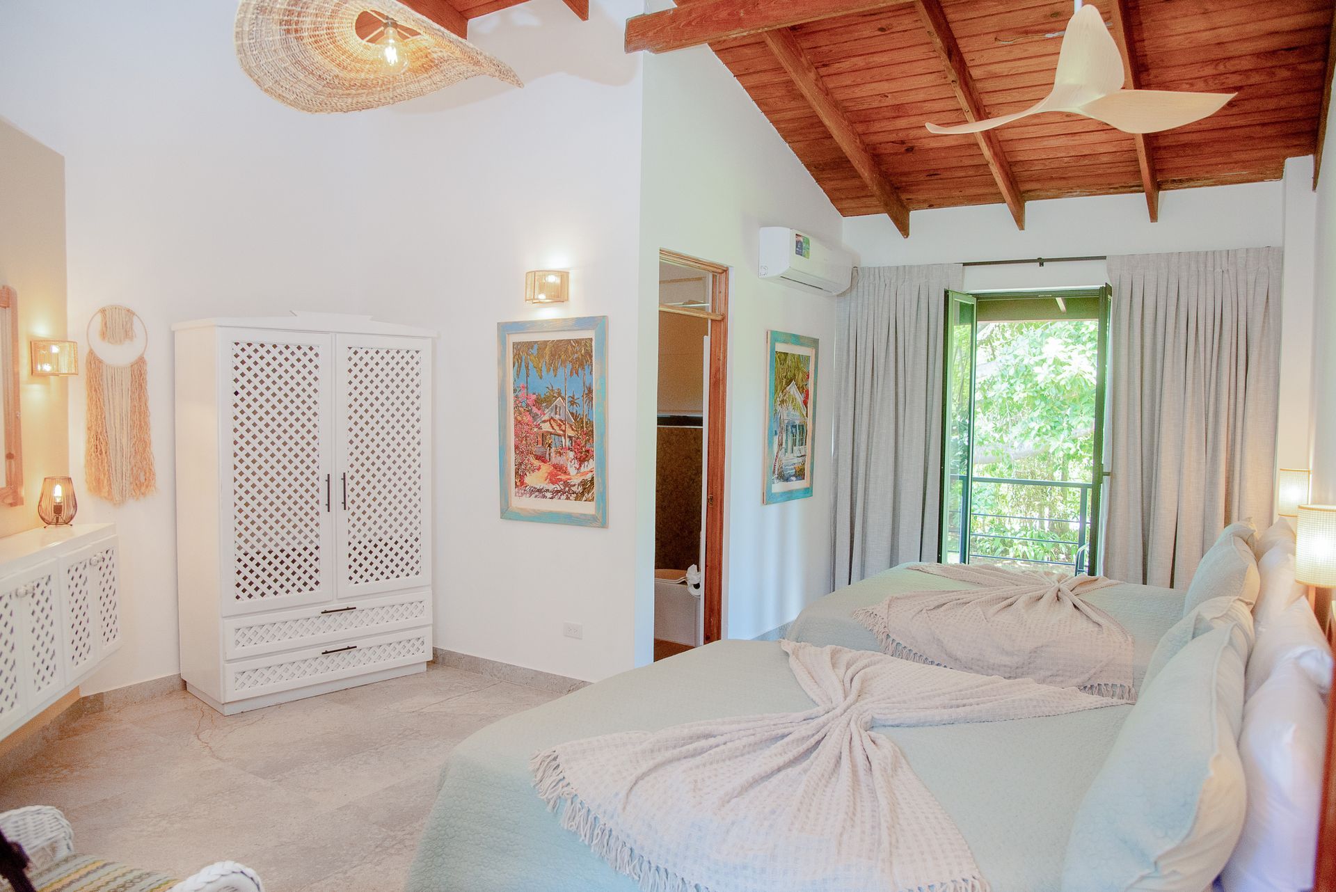 Smart TV, free Wi-Fi, safe, mini fridge, and air conditioning—ensuring a truly comfortable stay right in the center of Las Galeras.