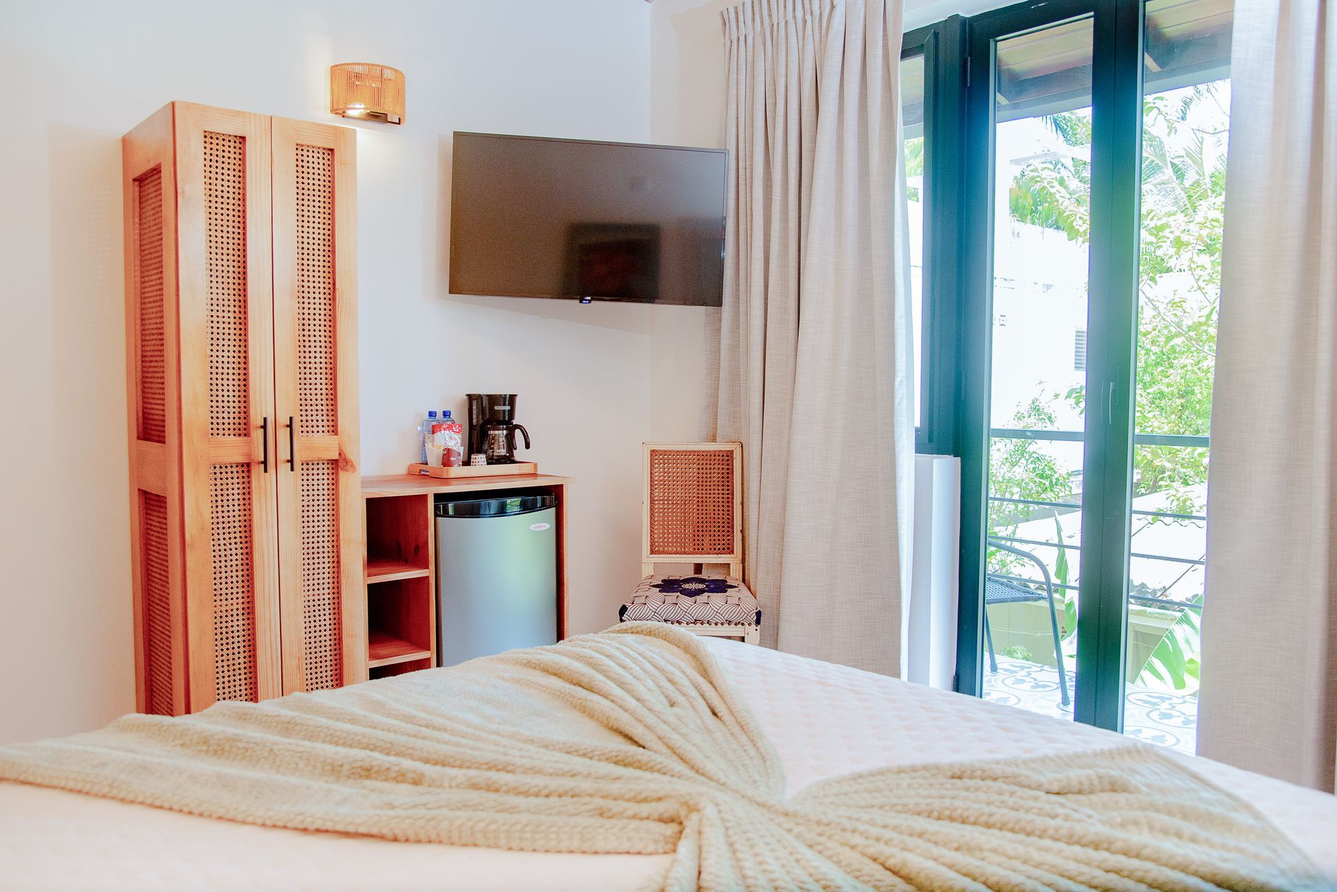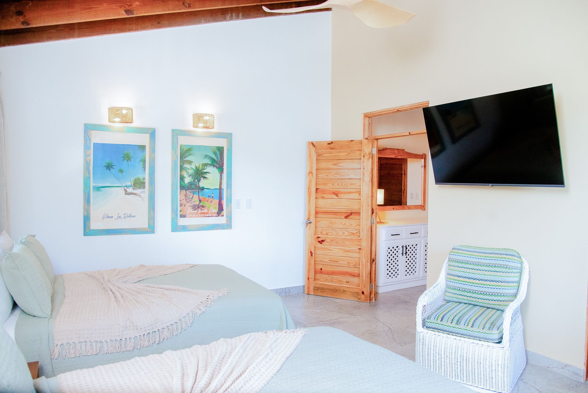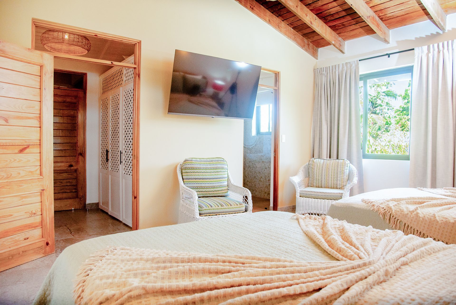 with seating area, a Queen size bed, private modern bathroom, air conditioning, flat-screen TV, free Wi-Fi, mini-fridge, a coffee station and a safe. The perfect choice to relax, recharge, and retreat after a day exploring the stunning beaches and authentic charm of Las Galeras and Samaná.